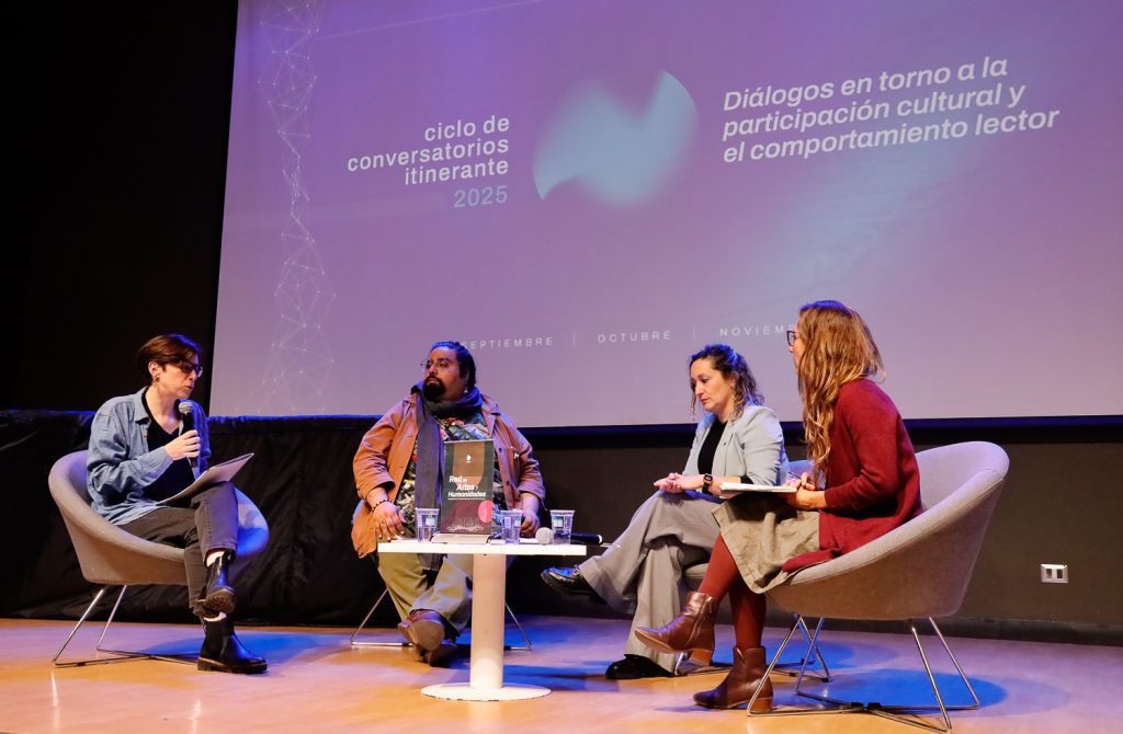 El conversatorio contó además con un panel de conversación con especialistas integrado por Clemencia González Tugas, directora de Cultura, Patrimonio y Extensión UOH; Rosario García-Huidobro, académica del Instituto de Ciencias de la Educación UOH; y Juan Ramón Olguín, coordinador general de la Agrupación de Desarrollo Sociocultural y Artístico de Pichilemu – Arte Libre, Punto de Cultura Comunitaria; moderado por Ignacia Saona, coordinadora de la Red en Artes y Humanidades del CUECH.