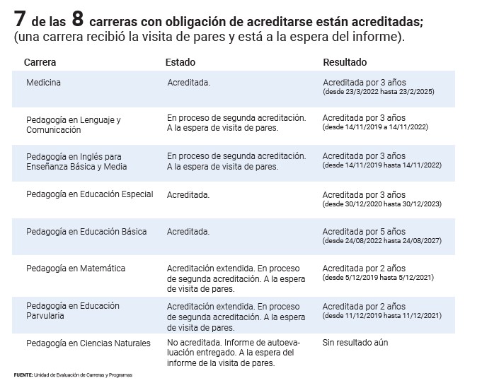 La docencia de pregrado considera la oferta de carreras, la pertinencia de las mallas curriculares, la calidad de la enseñanza y el aprendizaje, y los apoyos académicos y biopsicosociales que la UOH tiene a disposición de sus estudiantes.