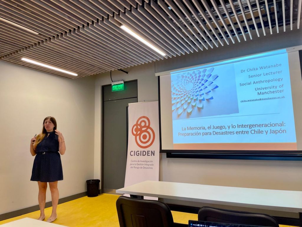 La profesora Watanabe adelantó además el próximo lanzamiento de su libro “Play to survive. Disaster preparedness along the Ring of Fire”, donde profundiza en la aplicación de métodos lúdicos para fortalecer la preparación intergeneracional en Chile y Japón, y manifestó su interés en continuar colaborando con académicos chilenos y casos de estudio locales. Según la Dra. Watanabe es importante ver la resiliencia de manera amplia, considerando memorias e historias de vida: “Generar encuentros intergeneracionales e internacionales, ayuda a que la preparación en desastres sea transversal. Se tiene que abordar el tema desde diferentes disciplinas y áreas de trabajo, ya sea reducción de riesgo, trabajo social o patrimonio”.