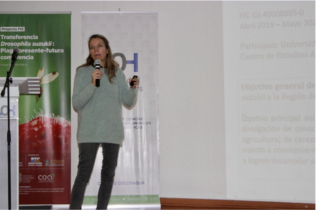 Cabe recordar que la plaga ataca principalmente los cultivos de cereza, ciruela, uva de mesa, frambuesa, arándanos, mora y frutilla e incluso a uva vinífera. Además, Paula Irles profundizó en que actualmente se estudian las diversas características que presenta la plaga en la región de O’Higgins, ya que ésta se comportará de manera diferencial dependiendo el lugar donde esté, así como la incorporación de la tecnología y cómo los factores climáticos intraprediales pueden afectar comportamiento. Incluso el paisaje influye en la dinámica poblacional en cada temporada; estos tres insumos llevarán a diseñar un sistema de alerta para la toma de decisiones que irá en directo beneficio de los productores y así no basar el control solamente en el uso de los insecticidas.