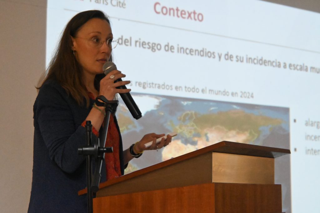 Durante su exposición, la Dra. Michot destacó la relevancia de estudiar este fenómeno en contextos como el chileno. “El objetivo de este proyecto es entender qué tipo de contaminación producen los incendios forestales. Estamos buscando estas respuestas en Chile, debido a la gran cantidad de eventos de este tipo. También buscamos comprender sus consecuencias, tanto en la salud humana como en el ámbito económico. Se trata de un trabajo interdisciplinario que reúne a investigadores e investigadoras de Chile, Francia, Taiwán y Brasil, desde áreas como la geografía, la geoquímica, las ciencias de la atmósfera y la epidemiología”, explicó.