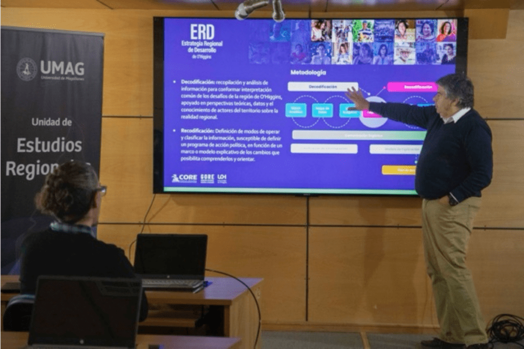 Durante su intervención, Castro abordó la experiencia metodológica que sustentó la ERD de O’Higgins, poniendo énfasis en los procesos de recolección, sistematización y análisis de datos requeridos para la toma de decisiones territoriales. Este trabajo dio origen a la creación del Observatorio Regional de la UOH y al desarrollo de una alianza estratégica con la dirección regional del Instituto Nacional de Estadísticas, orientada a fortalecer la disponibilidad y uso de información a nivel regional y municipal.